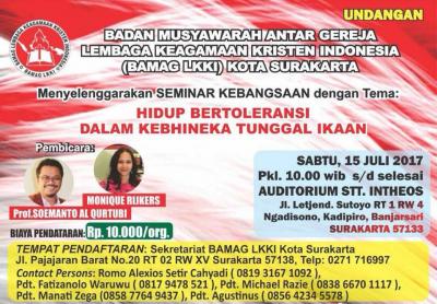 Seminar ini diselenggarakan oleh Badan Musyawarah Antar Gereja Lembaga Keagamaan Kristen Indonesia (BAMAG LKKI) Kota Surakarta. Tema seminar: "Hidup Bertoleransi dalam Kebhineka Tunggal Ikaan". | ||